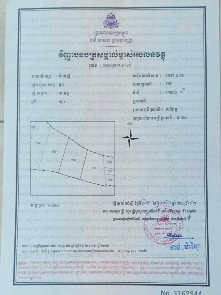 Google Map Code : 11.598859,104.304755 (PK28, NR44, the access to land about 2.5 kilomtres down from NR44 to land side. Follow National Road 4 and NR44